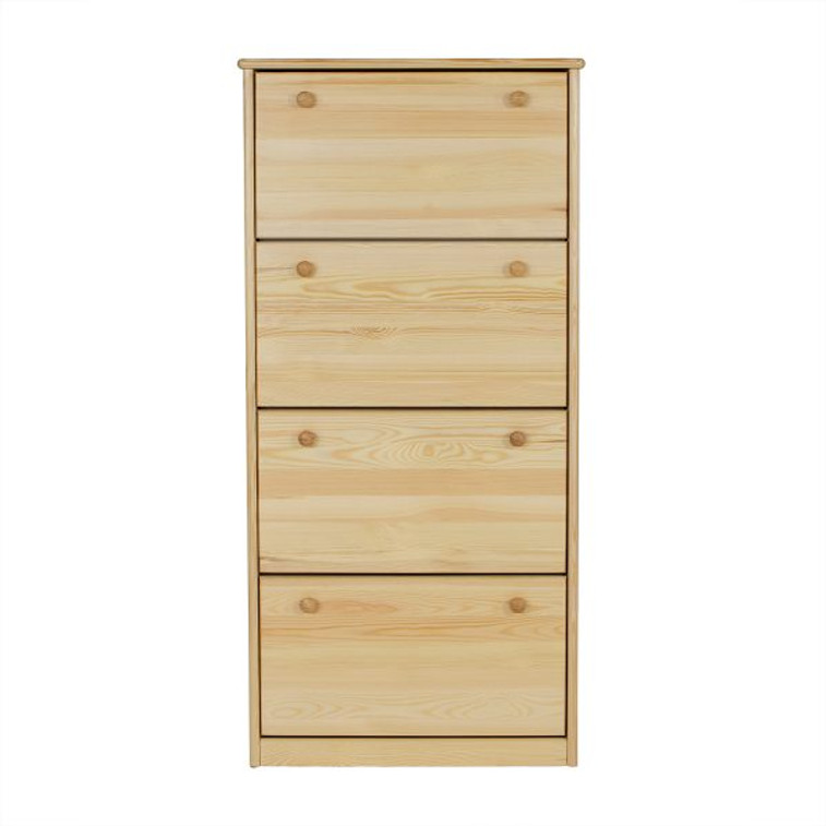 Botník SB110 vyrobený z masivního borovicového dřeva se bude skvěle hodit do předsíně. Je vybaven 4 funkčními přihrádkami, do kterých se snadno vejdou boty všech členů domácnosti.