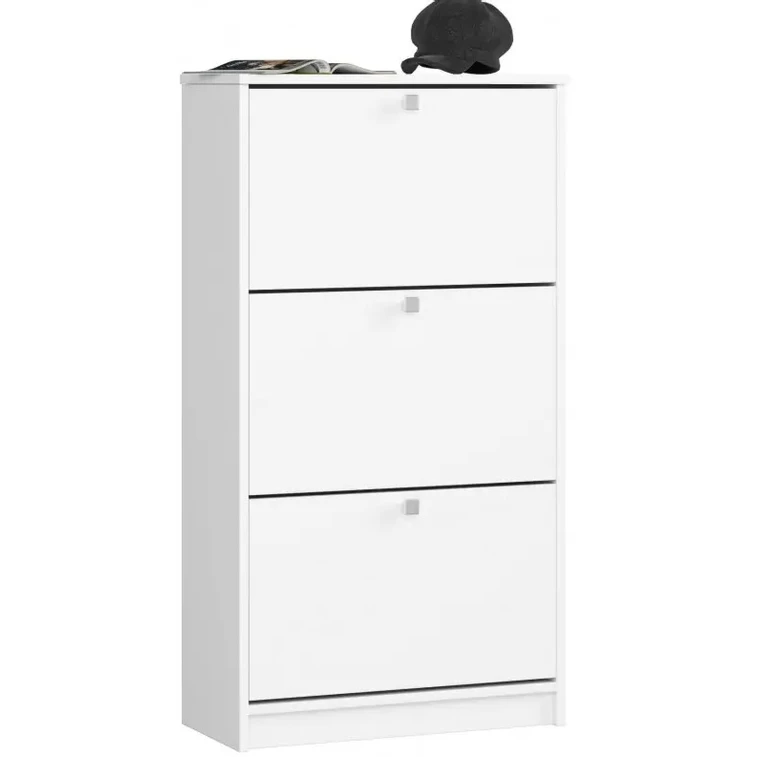Botník se třemi dvířky. Prostorný funkční botník lze použít v každé domácnosti. Vytvoříte sním funkční, reprezentativní uvítací prostor. Za výklopnými dvířky najdete úložný prostor, do kterého můžete uskladnit několik párů bot. Hodí se nejen do domácnosti ale i do hotelů, penzionů a kanceláří.