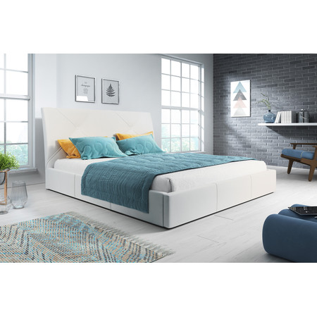 Čalouněná postel Karo. Elegance, jednoduchost a styl jsou hlavními výhodami těchto nadčasových čalouněných postelí, zajišťující pohodlné spaní. Vysoká opěrka hlavy poskytuje výbornou podporu pro záda vsedě, což ocení především klienti při čtení knih nebo sledování televize. Tato postel dodává jedinečnou atmosféru interiéru.