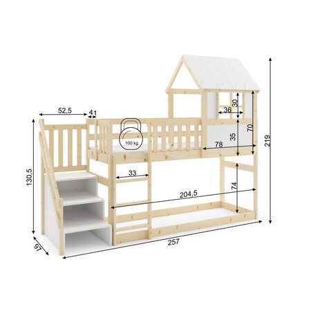 Dětská dřevěná postel ANTRESOLA se schůdky 90x200 cm
