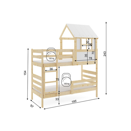 Dětská patrová postel ERYK s nástavbou domek 90x190 cm.