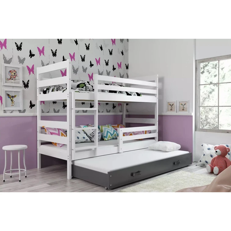 Dětská patrová postel ERYK s výsuvným lůžkem 80x160 cm- bílá.