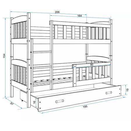 Dětská patrová postel KUBUS s úložným prostorem 90x200 cm - borovice.