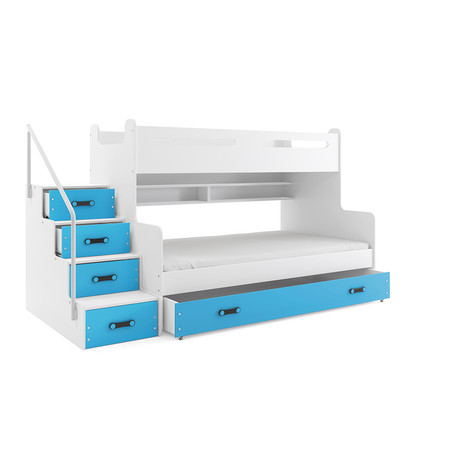 Dětská patrová postel Max III s úložným prostorem včetně matrací a roštů.