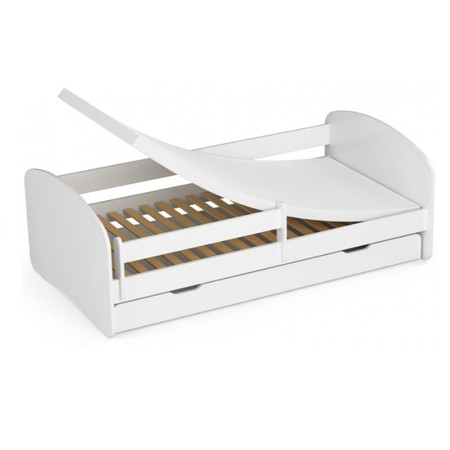 Dětská postel Smile s úložným prostorem včetně matrace a roštu. S ohledem na děti je veškerý sortiment vyroben ekologicky. Je tedy vyloučeno při kontaktu dítěte s nábytkem požití toxických nebo zdraví škodlivých látek.
