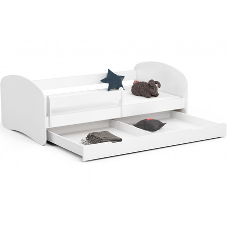 Dětská postel Smile s úložným prostorem včetně matrace a roštu. S ohledem na děti je veškerý sortiment vyroben ekologicky. Je tedy vyloučeno při kontaktu dítěte s nábytkem požití toxických nebo zdraví škodlivých látek.
