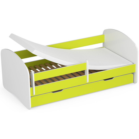 Dětská postel Smile s úložným prostorem včetně matrace a roštu. S ohledem na děti je veškerý sortiment vyroben ekologicky. Je tedy vyloučeno při kontaktu dítěte s nábytkem požití toxických nebo zdraví škodlivých látek.