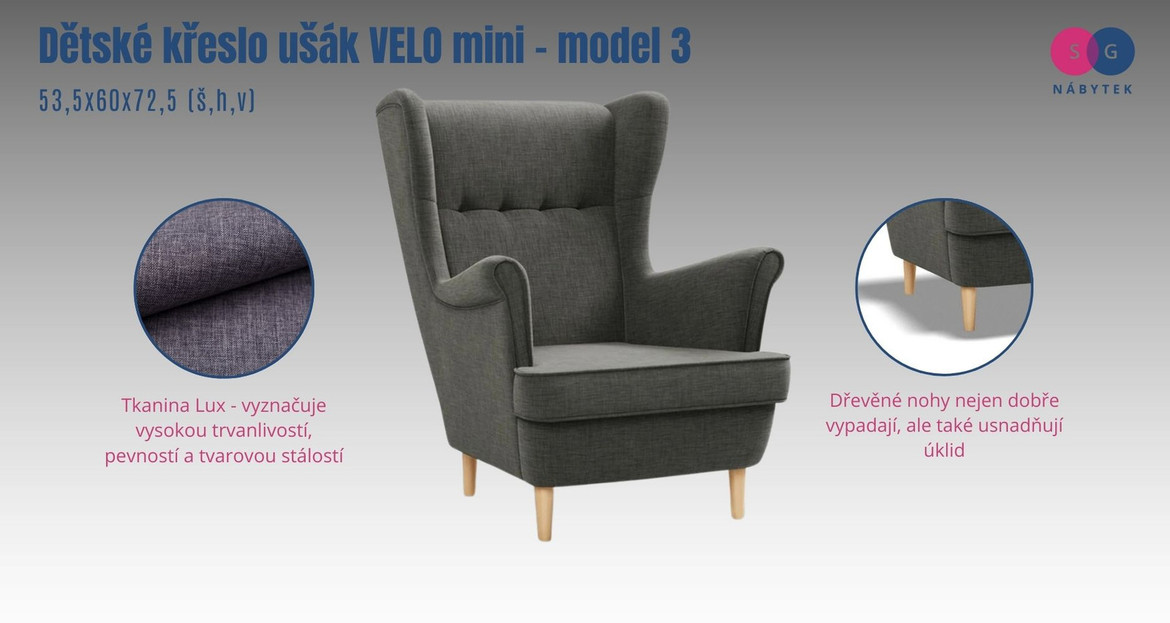 Díky pečlivě vybraným materiálům a pozornosti k detailu se křeslo VELO mini stane ústředním prvkem vašeho interiéru. Dokonale zapadne do vašeho interiéru, dodá mu eleganci a útulnost a zároveň se stane ideálním místem pro relaxaci.