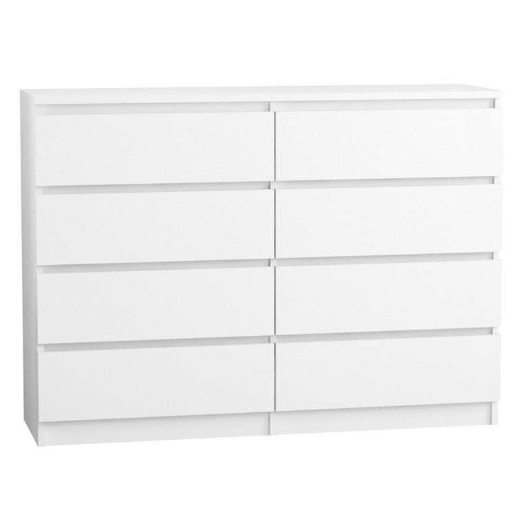 Komoda 140/8 je vyrobena z kvalitních materiálů. Univerzální vzhled splní očekávání všech, kteří oceňují kombinaci jednoduchosti a elegance. Bezúchytková čela zásuvek zajišťují pohodlné používání, a zdůrazňují modernistický charakter interiéru.