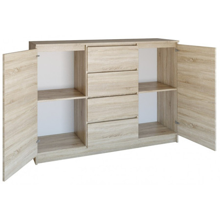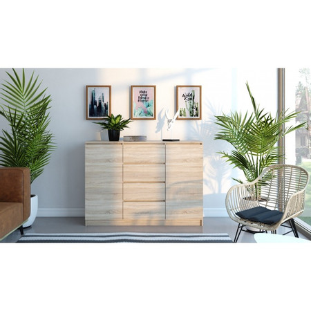 Jednoduchá a moderní komoda 2D4S 120. Je vyrobená z pevné laminované desky, která je odolná proti oděru a poškození. Univerzální vzhled splní očekávání každého, kdo ocení kombinaci jednoduchosti a elegance. Bezúchytková čela zásuvek zajišťují pohodlné používání.