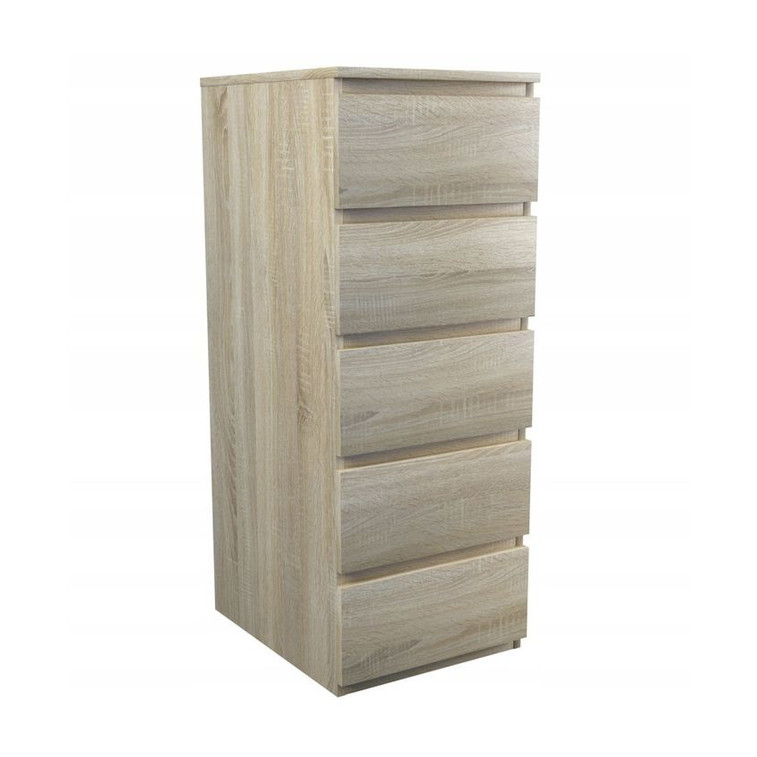 Jednoduchá a moderní komoda, která je vyrobená z pevné laminované desky, která je odolná proti oděru a poškození. Univerzální vzhled splní očekávání každého, kdo ocení kombinaci jednoduchosti a elegance. Bezúchytková čela zásuvek zajišťují pohodlné používání.