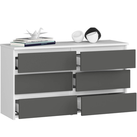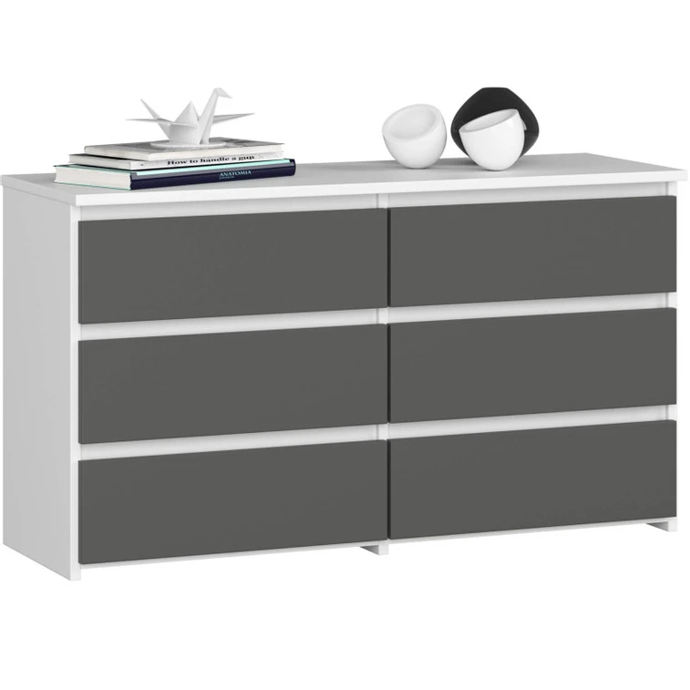 Jednoduchá a moderní komoda. Je vyrobená z pevné laminované desky, která je odolná proti oděru a poškození. Univerzální vzhled splní očekávání každého, kdo ocení kombinaci jednoduchosti a elegance. Bezúchytková čela zásuvek zajišťují pohodlné používání.