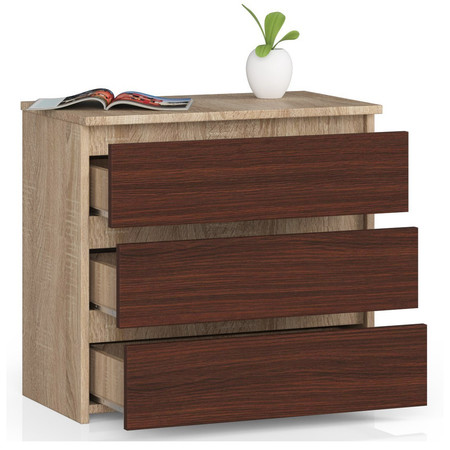 Stolek je vybaven třemi prostornými zásuvkami. Můžete je využít například na odkládání šperku, knížek nebo jiných drobností.