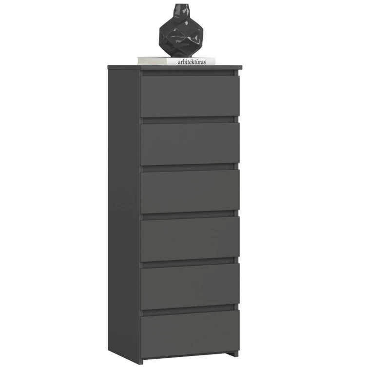 Jednoduchá a moderní komoda. Je vyrobená z pevné laminované desky, která je odolná proti oděru a poškození. Univerzální vzhled splní očekávání každého, kdo ocení kombinaci jednoduchosti a elegance. Bezúchytková čela zásuvek zajišťují pohodlné používání.