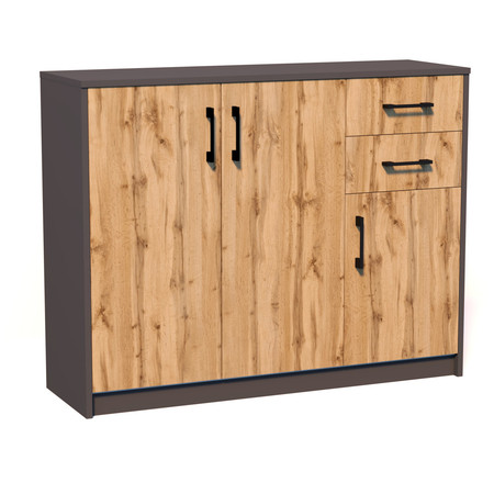 Jednoduchá a moderní komoda Julia K13D2. Je vyrobená z pevné laminované desky, která je odolná proti oděru a poškození. Univerzální vzhled splní očekávání každého, kdo ocení kombinaci jednoduchosti a elegance.