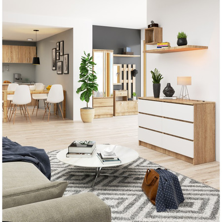 Jednoduchá a moderní komoda K120 6SZ. Je vyrobená z pevné laminované desky, která je odolná proti oděru a poškození. Univerzální vzhled splní očekávání každého, kdo ocení kombinaci jednoduchosti a elegance. Bezúchytková čela zásuvek zajišťují pohodlné používání.
