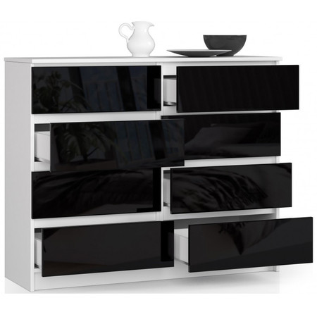 Komoda K120 8SZ černý lesk bílá
