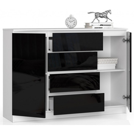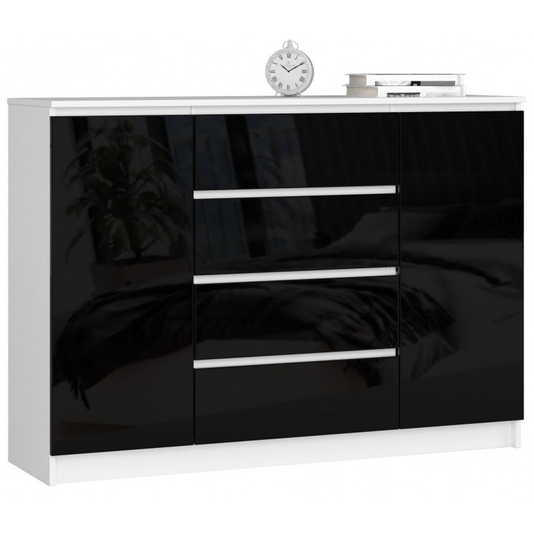 Komoda K140 2D4SZ bílá/černá lesk