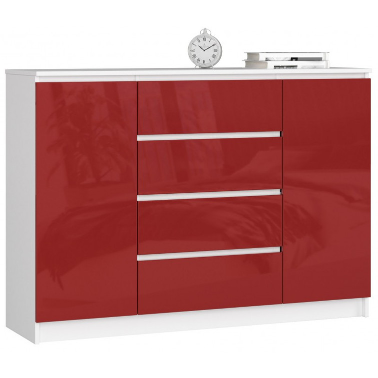 Jednoduchá a moderní komoda K140 2D4SZ. Je vyrobená z pevné laminované desky, která je odolná proti oděru a poškození. Univerzální vzhled splní očekávání každého, kdo ocení kombinaci jednoduchosti a elegance.