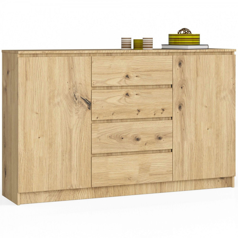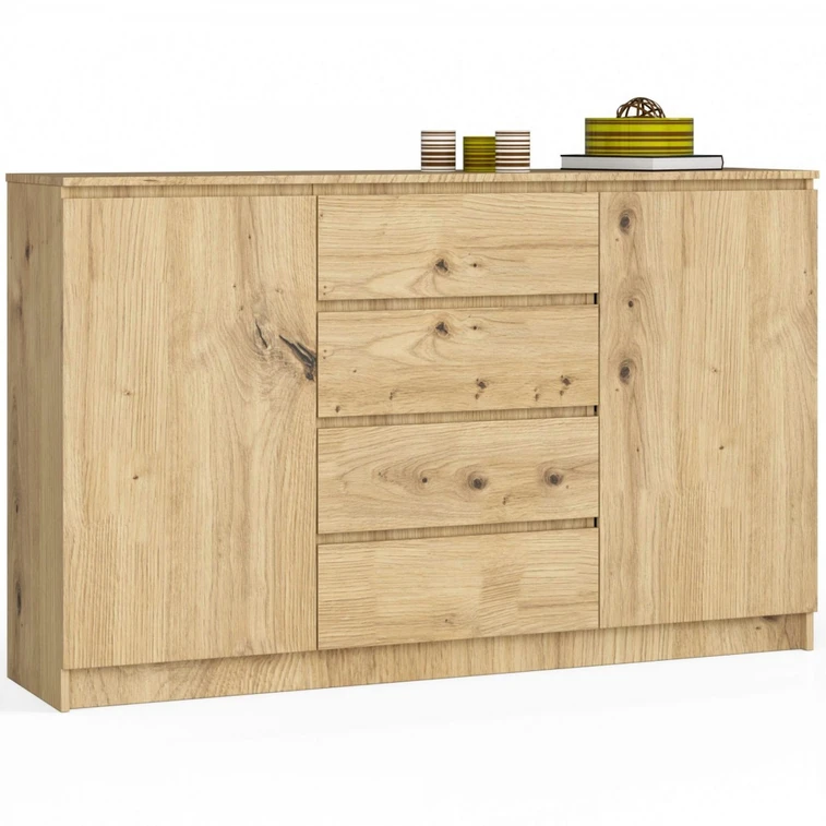 Komoda K140 2D4SZ. Kdo by nesnil o pevné, elegantní a funkční komodě. Jedná se o oblíbený kus nábytku, který v naší nabídce nemohl chybět. Nábytek vypadá vizuálně zajímavě, hodí se tak do obývacího pokoje, ložnice, obývacího pokoje nebo předsíně.