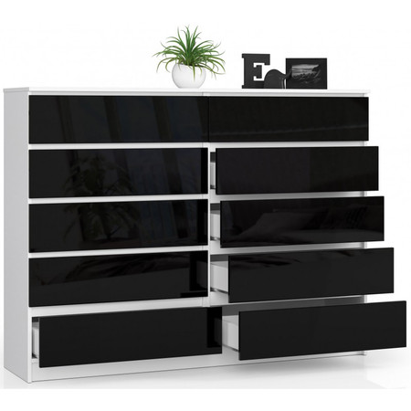Komoda K160 10SZ bílá/černá lesk
