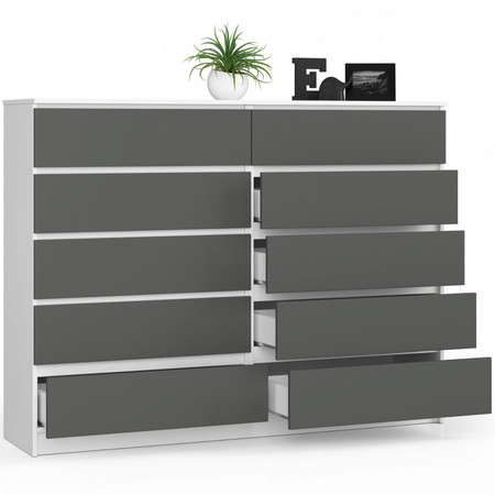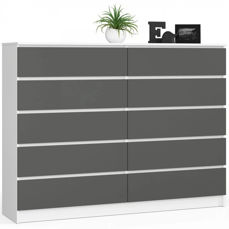 Komoda K160 10SZ - bílá/grafit