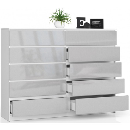 Jednoduchá a moderní komoda K160 10SZ. Je vyrobená z pevné laminované desky, která je odolná proti oděru a poškození. Univerzální vzhled splní očekávání každého, kdo ocení kombinaci jednoduchosti a elegance.