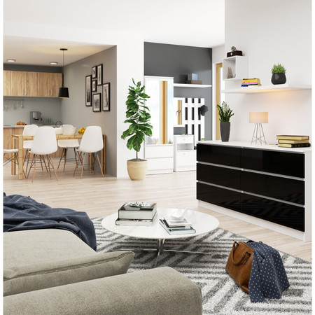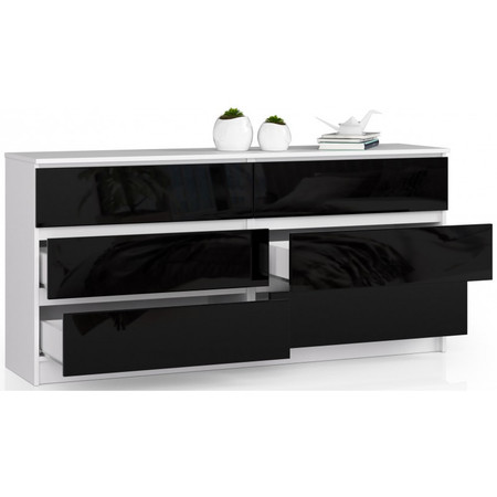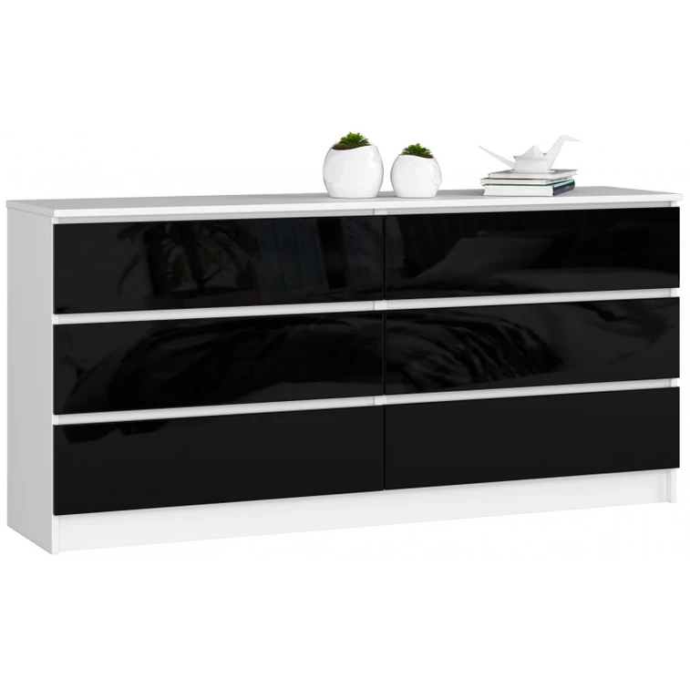 Jednoduchá a moderní komoda K160 6SZ. Je vyrobená z pevné laminované desky, která je odolná proti oděru a poškození. Univerzální vzhled splní očekávání každého, kdo ocení kombinaci jednoduchosti a elegance. Bezúchytková čela zásuvek zajišťují pohodlné používání.