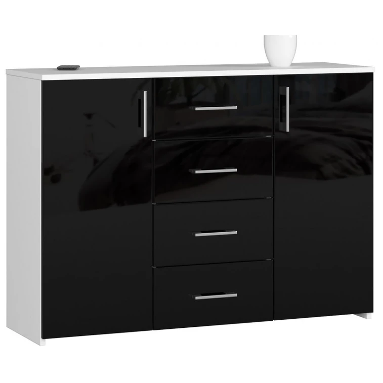 Jednoduchá a moderní komoda K45. Je vyrobená z pevné laminované desky, která je odolná proti oděru a poškození. Univerzální vzhled splní očekávání každého, kdo ocení kombinaci jednoduchosti a elegance.
