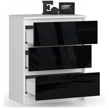 Komoda K60 3SZ - bílá/černá lesk
