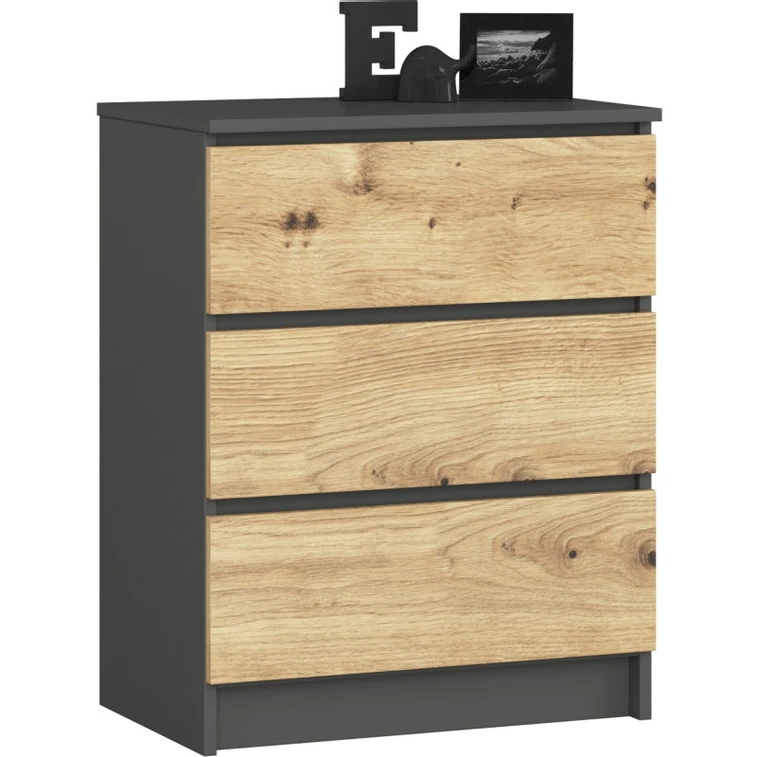 Jednoduchá a moderní komoda. Je vyrobená z pevné laminované desky, která je odolná proti oděru a poškození. Univerzální vzhled splní očekávání každého, kdo ocení kombinaci jednoduchosti a elegance. Bezúchytková čela zásuvek zajišťují pohodlné používání.