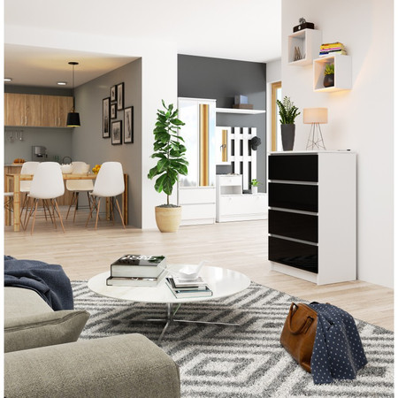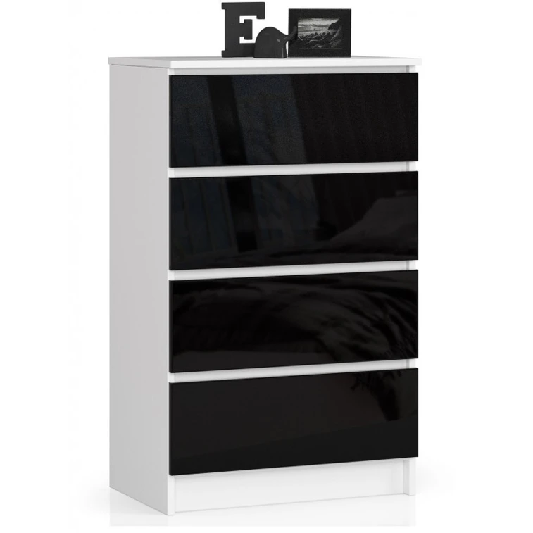 Jednoduchá a moderní komoda K60 4SZ. Je vyrobená z pevné laminované desky, která je odolná proti oděru a poškození. Univerzální vzhled splní očekávání každého, kdo ocení kombinaci jednoduchosti a elegance.