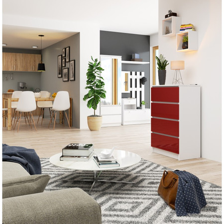 Jednoduchá a moderní komoda K60 4SZ. Je vyrobená z pevné laminované desky, která je odolná proti oděru a poškození. Univerzální vzhled splní očekávání každého, kdo ocení kombinaci jednoduchosti a elegance.