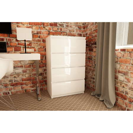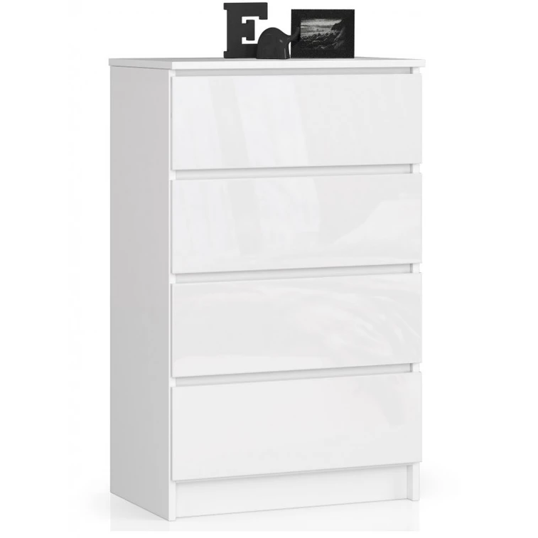 Jednoduchá a moderní komoda K60 4SZ. Je vyrobená z pevné laminované desky, která je odolná proti oděru a poškození. Univerzální vzhled splní očekávání každého, kdo ocení kombinaci jednoduchosti a elegance.