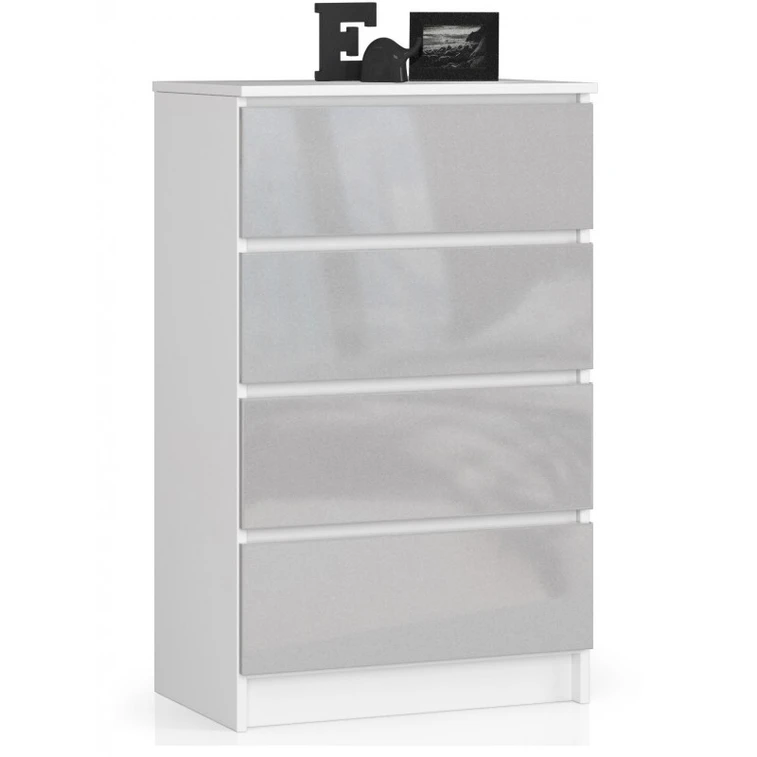 Jednoduchá a moderní komoda K60 4SZ. Je vyrobená z pevné laminované desky, která je odolná proti oděru a poškození. Univerzální vzhled splní očekávání každého, kdo ocení kombinaci jednoduchosti a elegance.