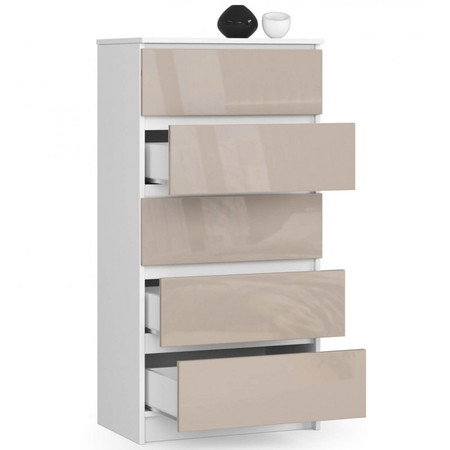 Komoda K60 5SZ cappuccino lesk bílá