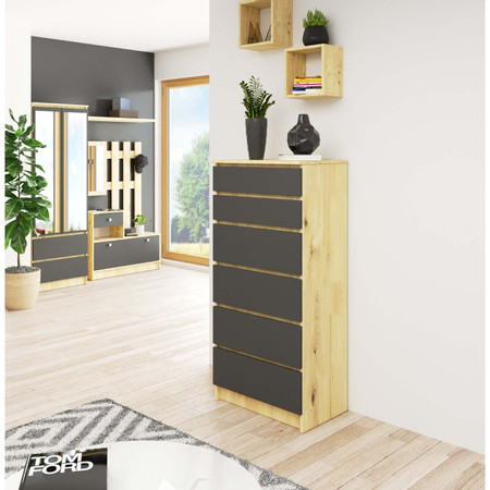 Jednoduchá a moderní komoda K60 6SZ. Je vyrobená z pevné laminované desky, která je odolná proti oděru a poškození. Univerzální vzhled splní očekávání každého, kdo ocení kombinaci jednoduchosti a elegance.