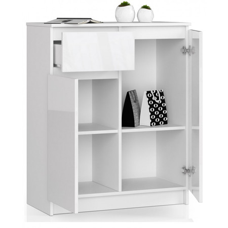 Jednoduchá a moderní komoda K80 2D1SZ. Je vyrobená z pevné laminované desky, která je odolná proti oděru a poškození. Univerzální vzhled splní očekávání každého, kdo ocení kombinaci jednoduchosti a elegance.