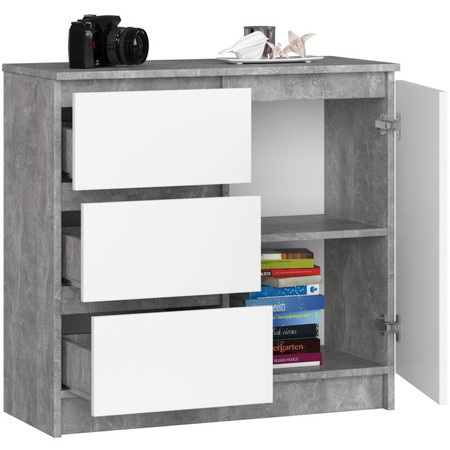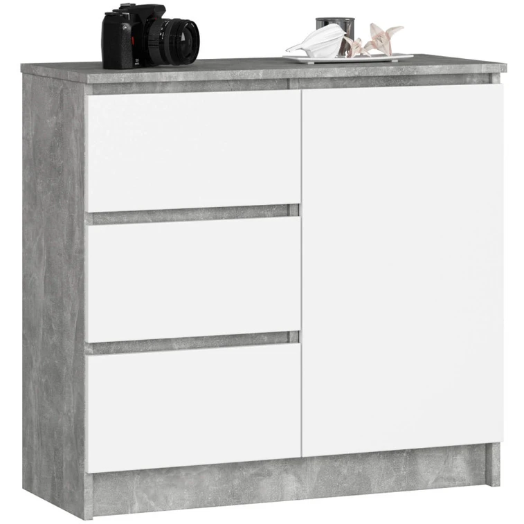 Komoda K80 JERRY 1D 3SZ - beton/bílá.