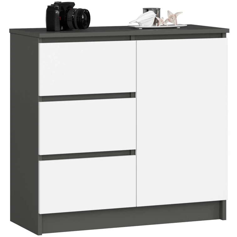 Komoda K80 JERRY 1D 3SZ - grafit/bílá.