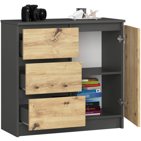 Komoda K80 JERRY 1D 3SZ - grafit/dub artisan