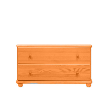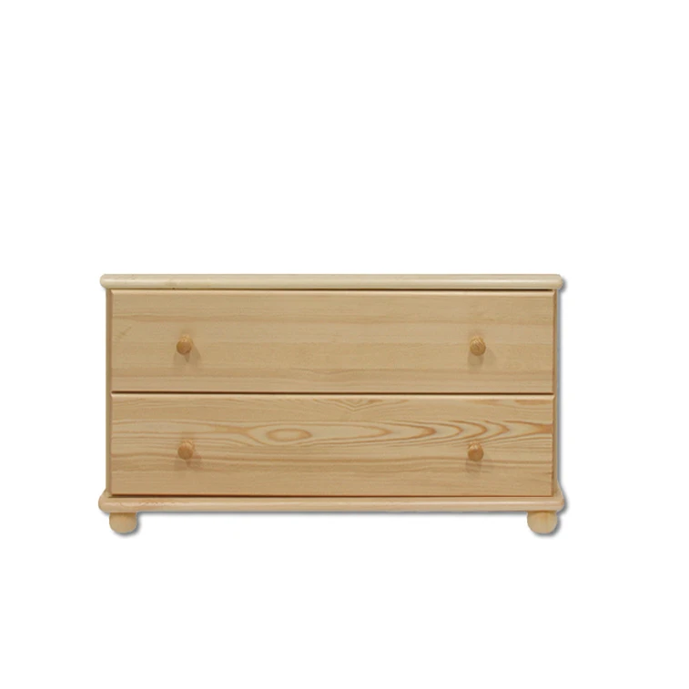 Kvalitní komoda KD101. Dřevěná zásuvková komoda se 2 zásuvkami je vyrobena z masivní přírodní borovice a je povrchově upravená ekologickým lakováním. Zásuvky jsou dřevěné na kolečkových výsuvech. Tato komoda se vyznačuje pečlivým zpracováním a dlouhou životností.