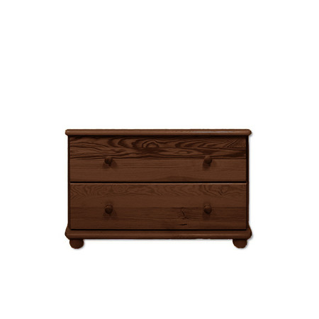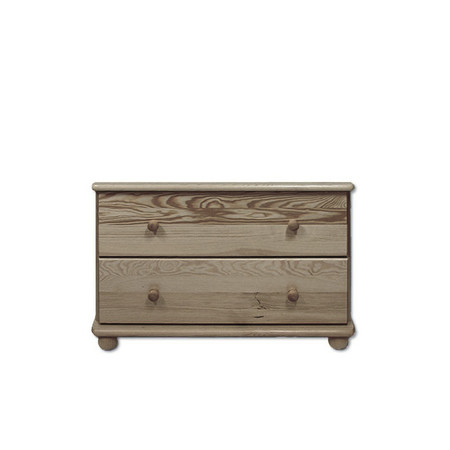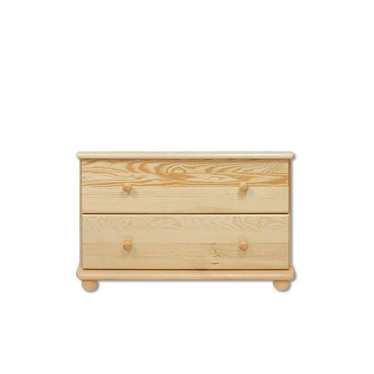Kvalitní komoda KD102. Dřevěná zásuvková komoda se 2 zásuvkami je vyrobena z masivní přírodní borovice a je povrchově upravená ekologickým lakováním. Zásuvky jsou dřevěné na kolečkových výsuvech. Tato komoda se vyznačuje pečlivým zpracováním a dlouhou životností.