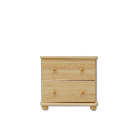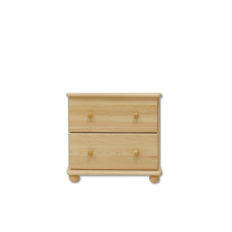 Kvalitní komoda KD103. Dřevěná zásuvková komoda se 2 zásuvkami je vyrobena z masivní přírodní borovice a je povrchově upravená ekologickým lakováním. Zásuvky jsou dřevěné na kolečkových výsuvech. Tato komoda se vyznačuje pečlivým zpracováním a dlouhou životností.