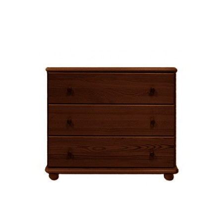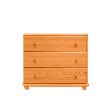 Kvalitní komoda KD106. Dřevěná zásuvková komoda se 3 zásuvkami je vyrobena z masivní přírodní borovice a je povrchově upravená ekologickým lakováním. Zásuvky jsou dřevěné na kolečkových výsuvech. Tato komoda se vyznačuje pečlivým zpracováním a dlouhou životností.