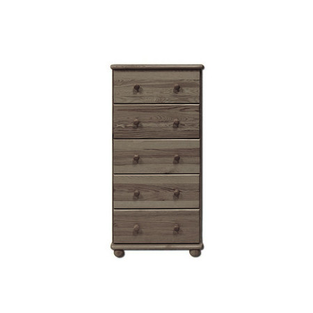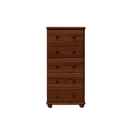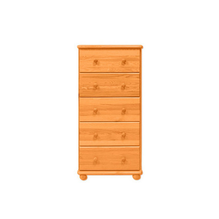 Kvalitní komoda KD115. Dřevěná zásuvková komoda s 5 zásuvkami je vyrobena z masivní přírodní borovice a je povrchově upravená ekologickým lakováním. Zásuvky jsou dřevěné na kolečkových výsuvech. Tato komoda se vyznačuje pečlivým zpracováním a dlouhou životností.