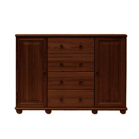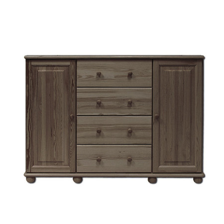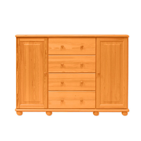 Kvalitní komoda KD120. Dřevěná zásuvková komoda se 4 zásuvkami a 2 dvířky je vyrobena z masivní přírodní borovice a je povrchově upravená ekologickým lakováním. Zásuvky jsou dřevěné na kolečkových výsuvech. Tato komoda se vyznačuje pečlivým zpracováním a dlouhou životností.