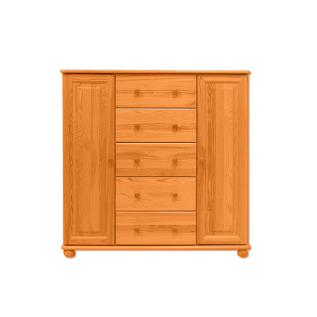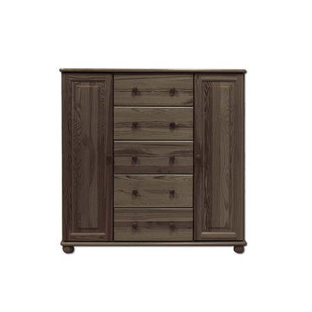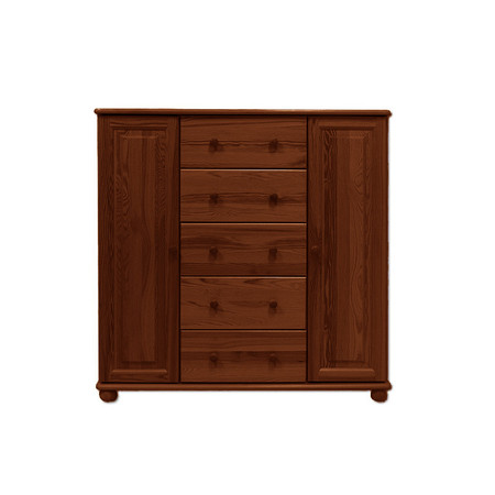 Kvalitní komoda KD125. Dřevěná zásuvková komoda s 5 zásuvkami a 2 dvířky je vyrobena z masivní přírodní borovice a je povrchově upravená ekologickým lakováním. Zásuvky jsou dřevěné na kolečkových výsuvech. Tato komoda se vyznačuje pečlivým zpracováním a dlouhou životností.