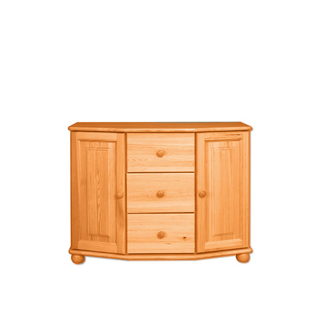 Kvalitní komoda KD135. Dřevěná zásuvková komoda se 3 zásuvkami a 2 dvířky je vyrobena z masivní přírodní borovice a je povrchově upravená ekologickým lakováním. Zásuvky jsou dřevěné na kolečkových výsuvech. Tato komoda se vyznačuje pečlivým zpracováním a dlouhou životností.