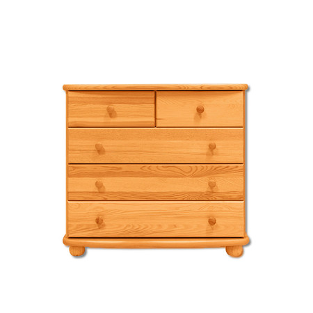 Kvalitní komoda KD149. Dřevěná zásuvková komoda se 5 zásuvkami je vyrobena z masivní přírodní borovice a je povrchově upravená ekologickým lakováním. Zásuvky jsou dřevěné na kolečkových výsuvech. Tato komoda se vyznačuje pečlivým zpracováním a dlouhou životností.